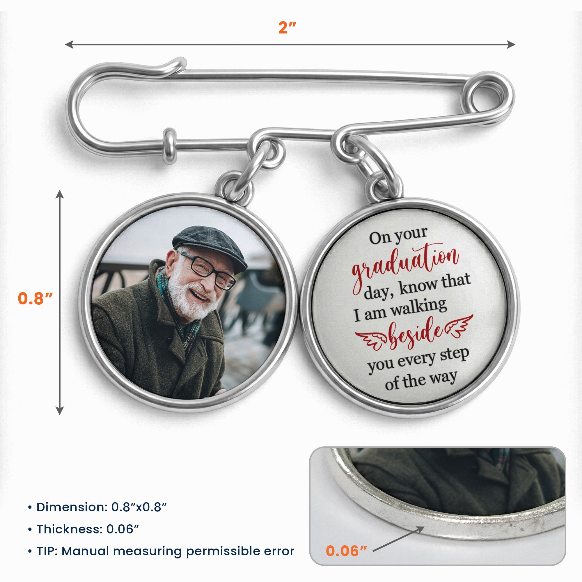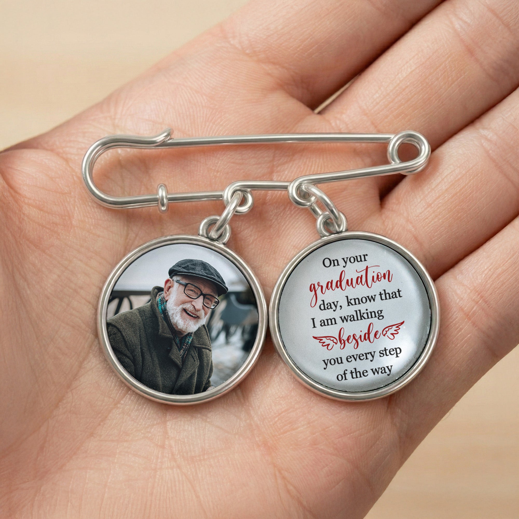Graduation Walking Beside You Every Step - Personalized Lapel Pin With Photo Charms